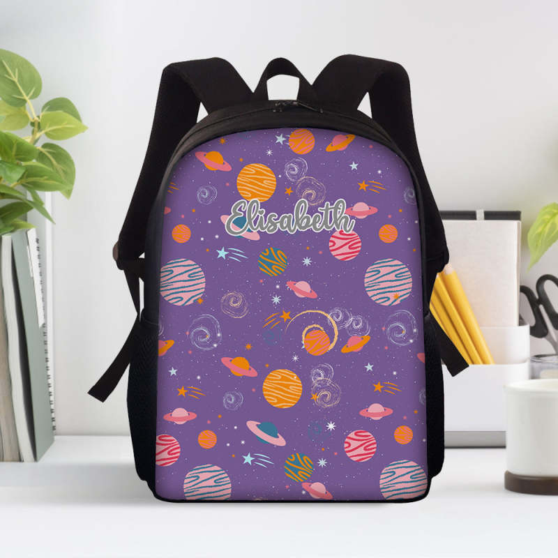 Custom Name Backpack Personalised Planet School Bag for Kids