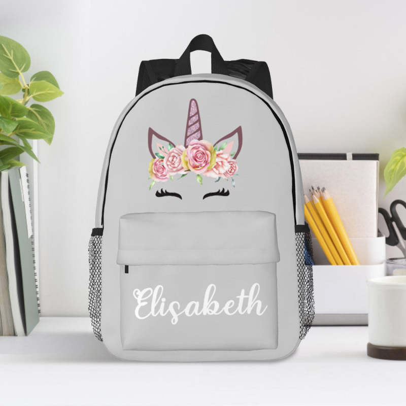 Custom Name Backpack Personalised Unicorn School Bag for Kids