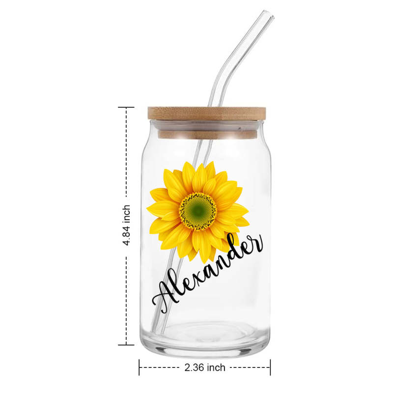 Custom Name Can Glass with Sunflower with Straw Bridesmaid Gifts