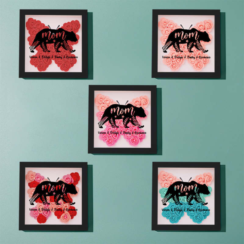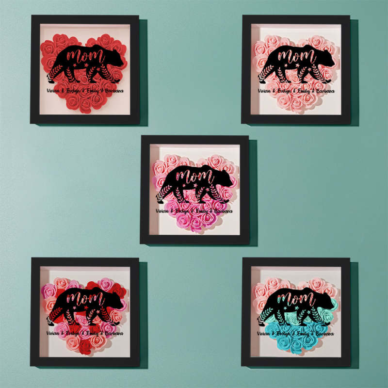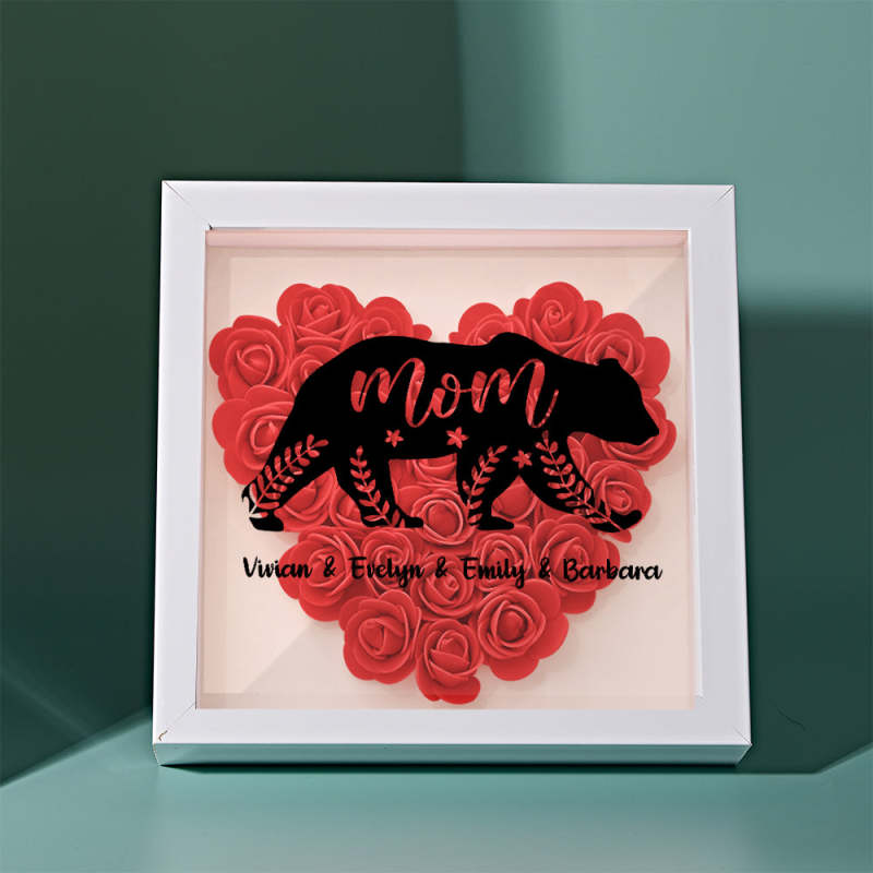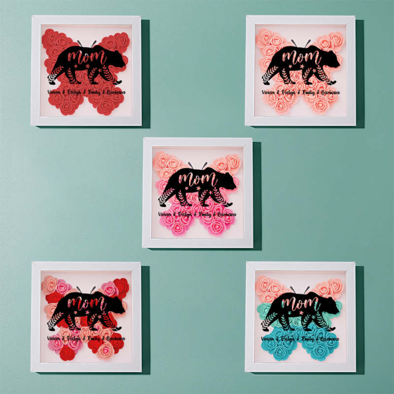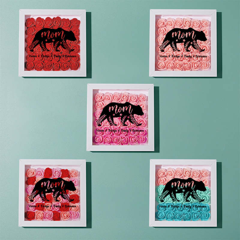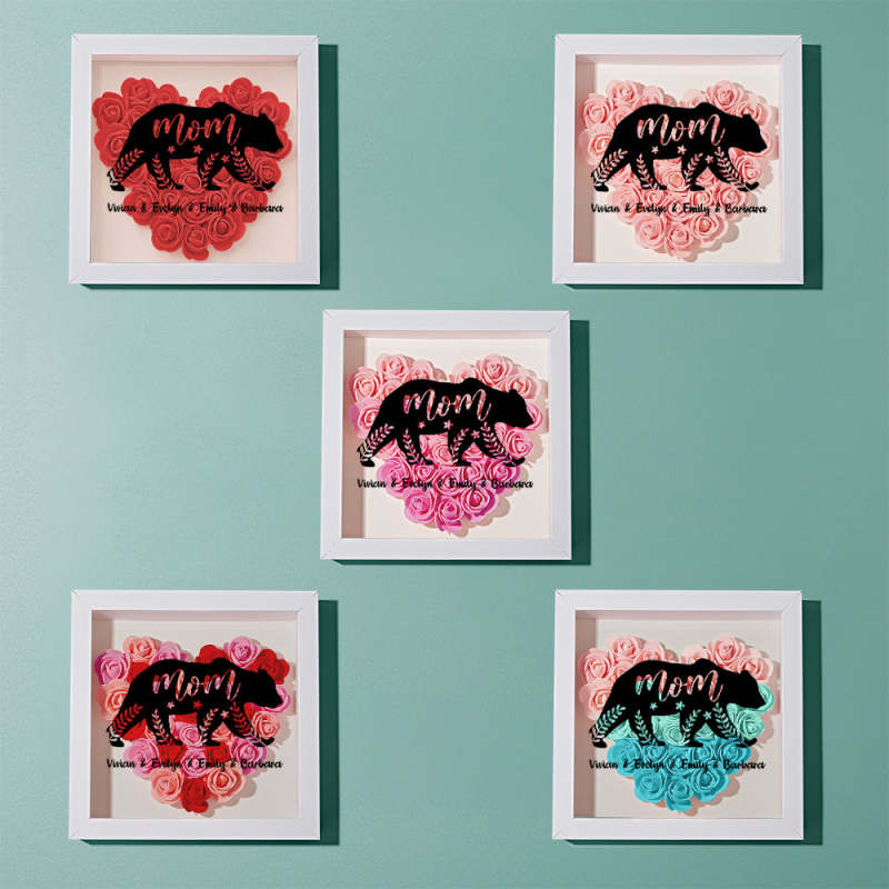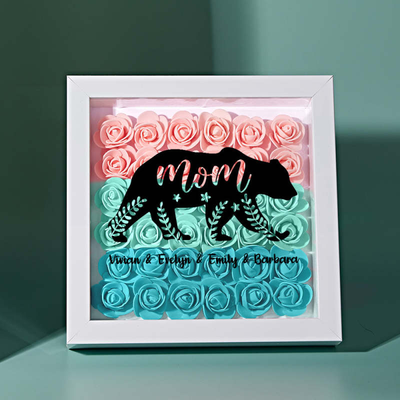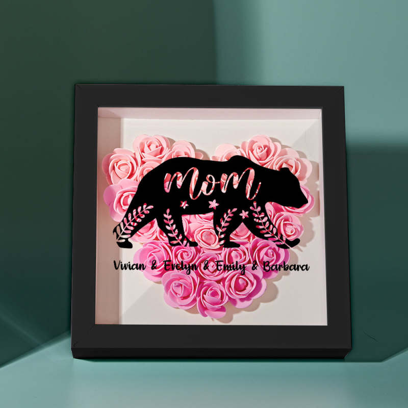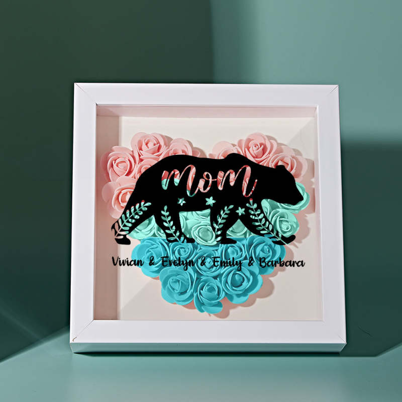 Custom Name Flower Shadow Box Personalized Bear Flower Shadowbox Frame Mother's Day Gift