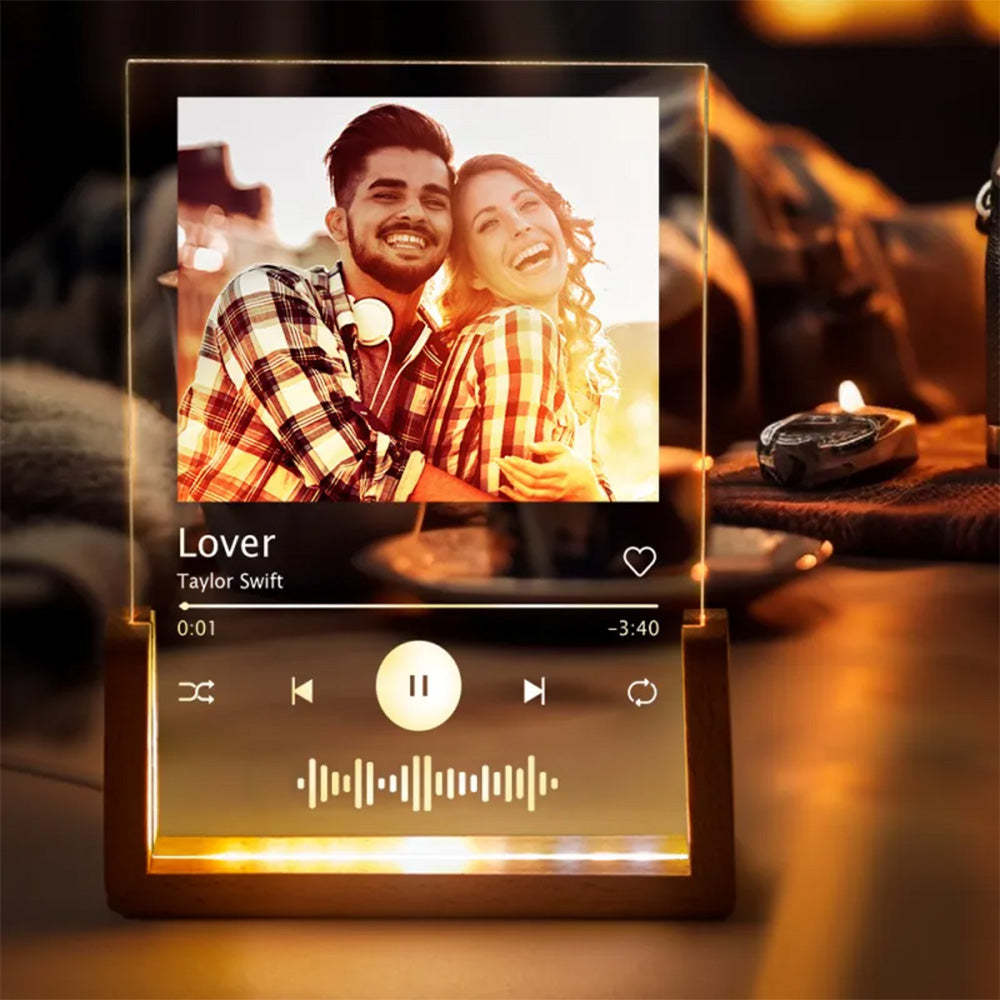 Custom Photo Acrylic Song Plaque,Personalized Music Plaque,Night Light Lamp with Music Code, Anniversary Gift
