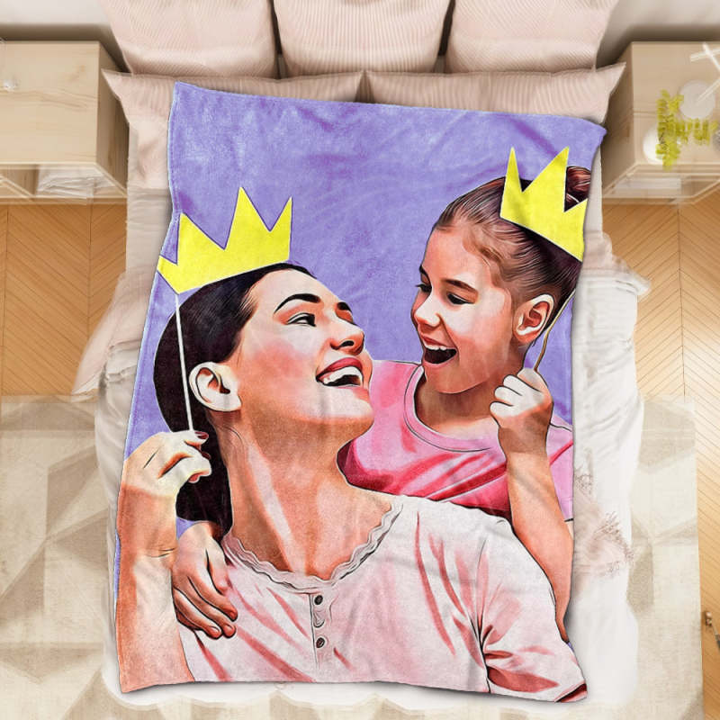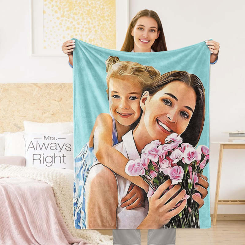Custom Photo Blankets Personalized Blankets Painted Art Portrait Fleece Blanket Best Gift 2021 Mother's Day Gift Mom and Daughter Blanket