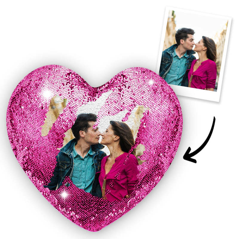 Gift for Her Custom Photo Magic Heart Sequin Pillow Multicolor Shiny
