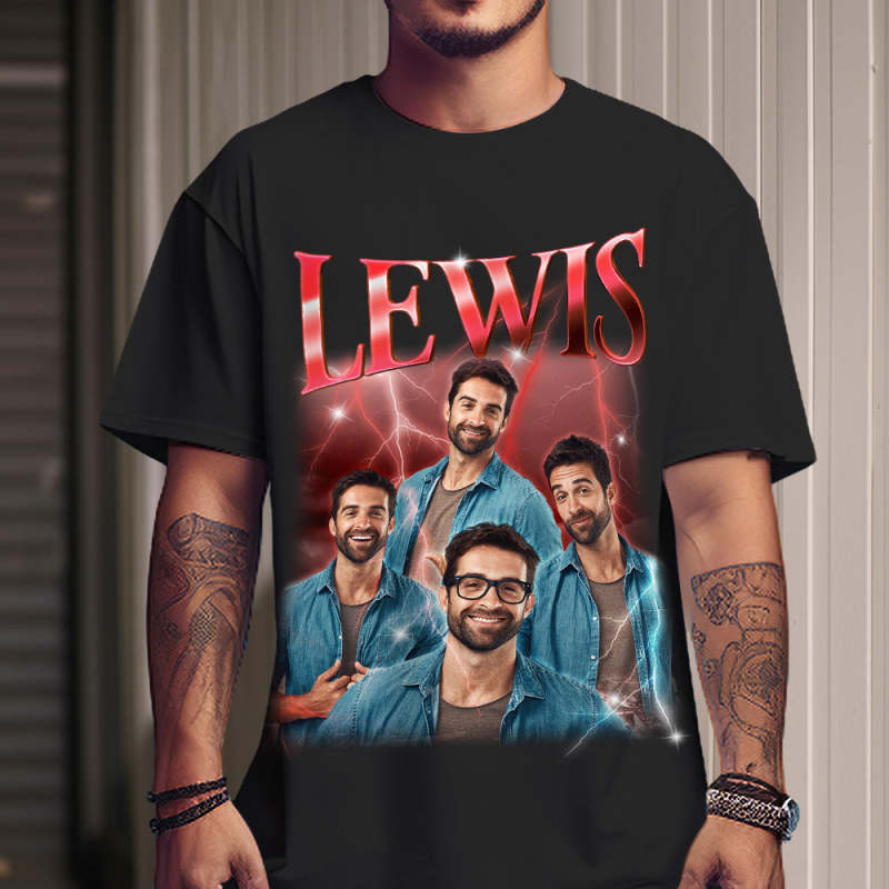 Custom Photo Vintage Tee Personalized Name T-shirt for Couple Boyfriend Shirt