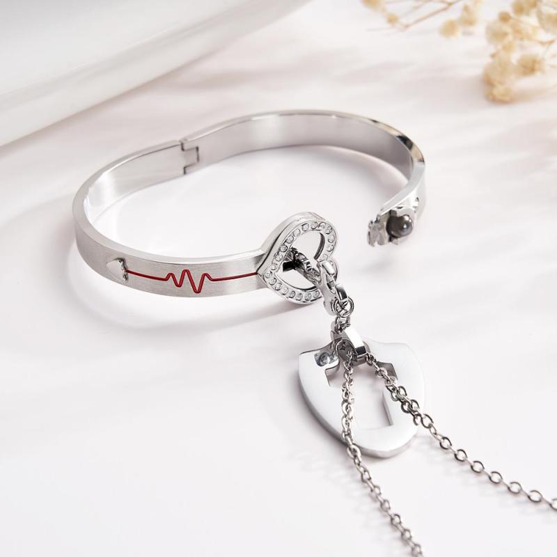 Custom Projection Shield Key Pendant Necklace and Lock Bracelet You Hold the Key to My Heart Gift