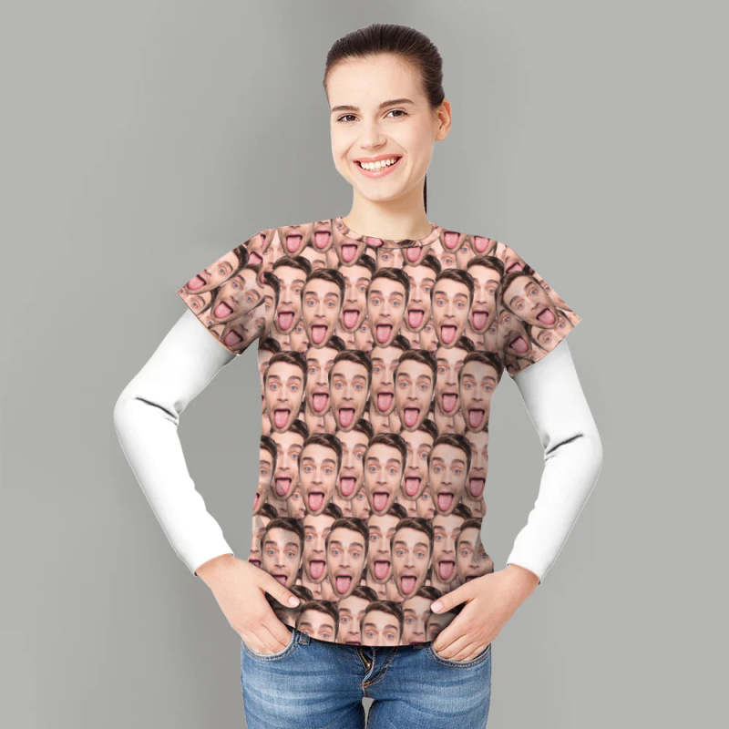 Custom T-shirt Personalized Shirt My Face All Over Print Tee Mash Face Men's T-shirt