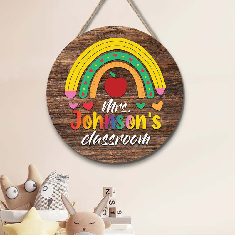 Custom Teacher Name Sign for Door, Teacher Personalized Rainbow Sign