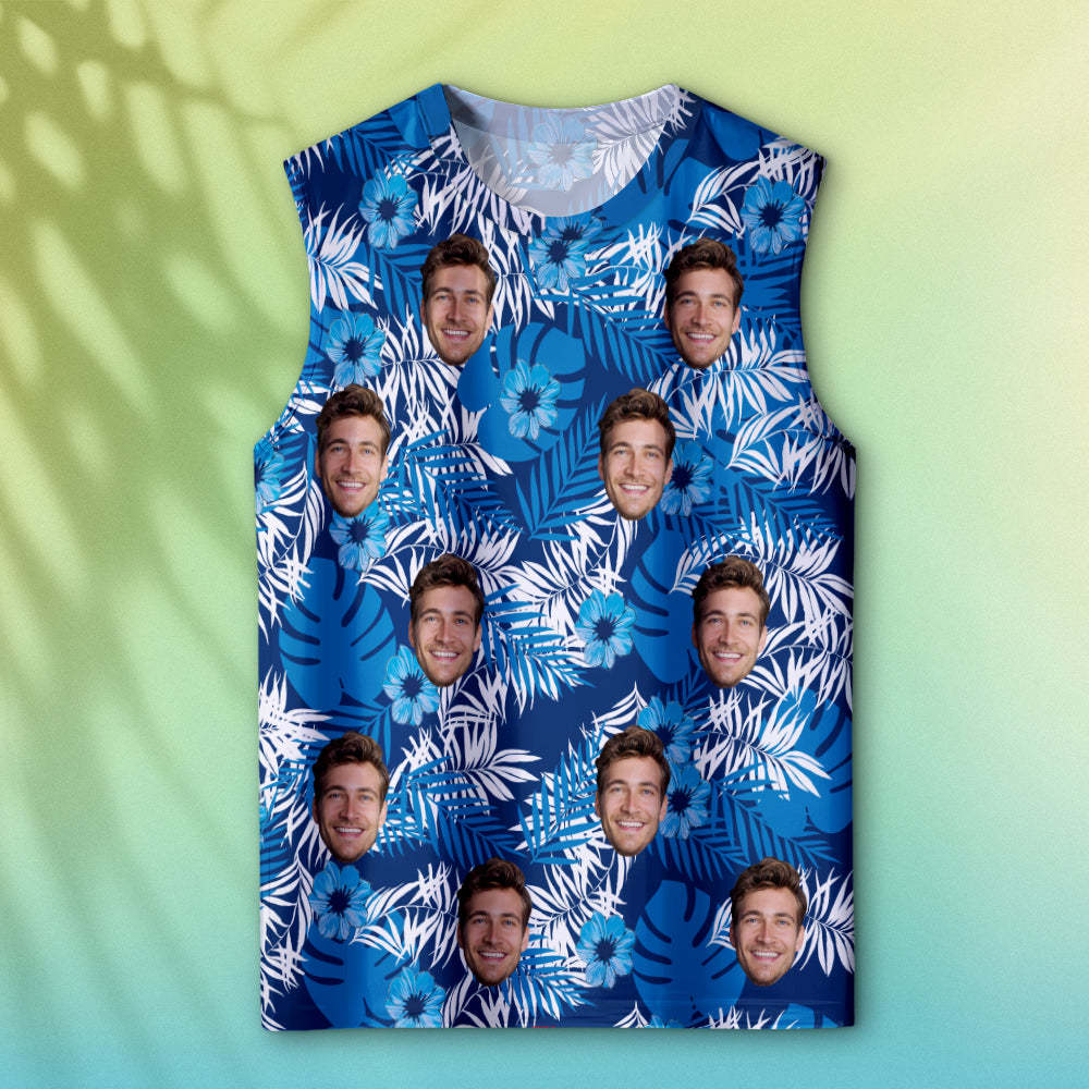 Custom Thick Face Tank Tops Men's Sleeveless Shirt All Over Print Blue