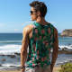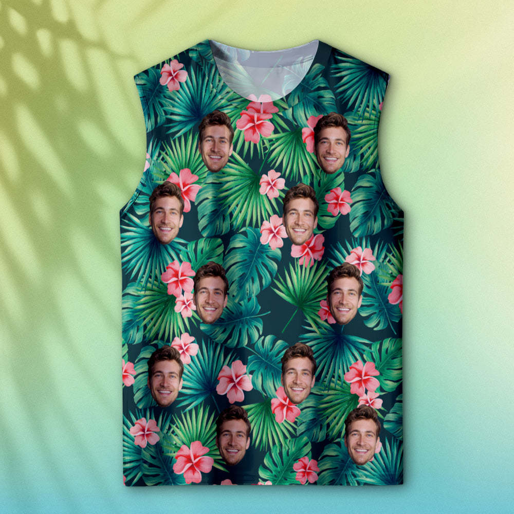 Custom Thick Face Tank Tops Men's Sleeveless Shirt Red Flowers