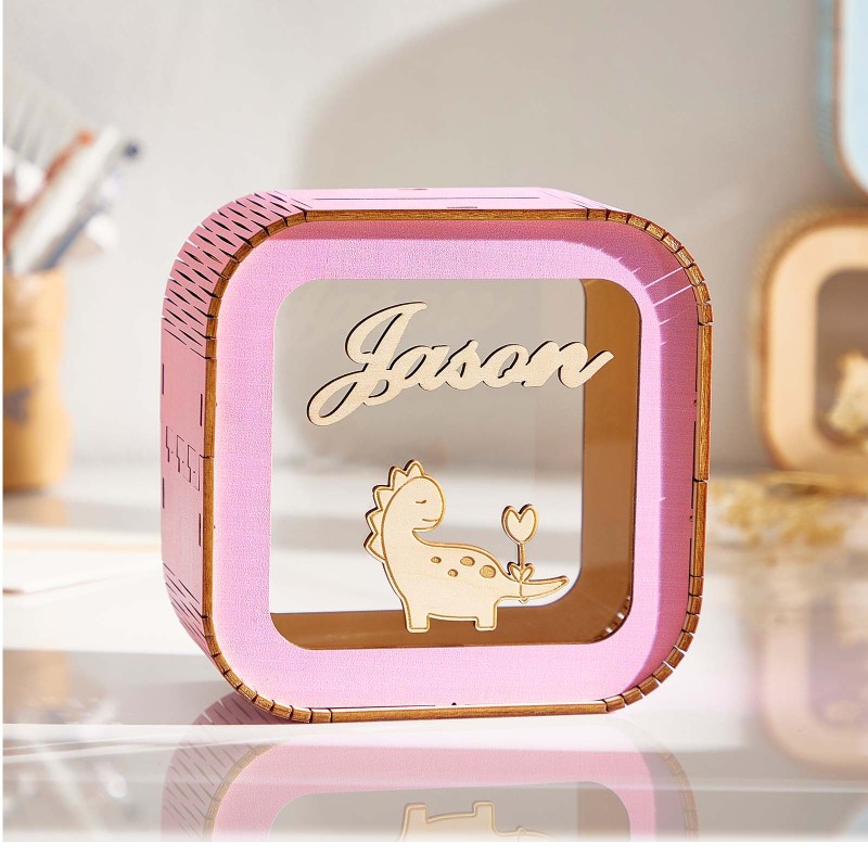 Custom Wooden Piggy Bank with Name Personalized Coin Name Bank Money Box Nursery Decoration