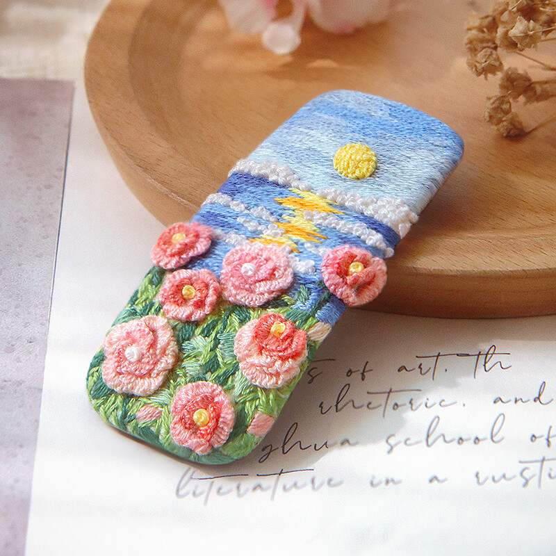 DIY Crochet & Embroidery Hair Clip Kit | Handmade Floral Barrette Craft Set, Easy Yarn & Stitch Gift for Women & Teens