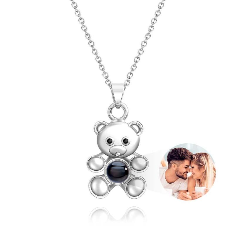 "Fall in Love" Teddy Bear Personalized Photo Projection Sterling Silver Necklace