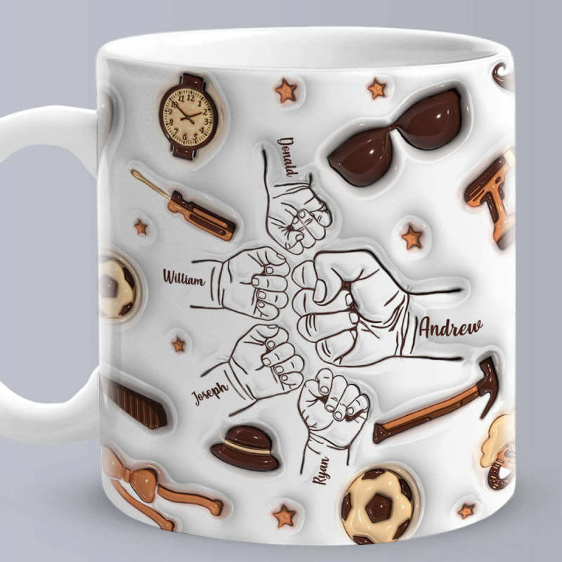 Personalized 1-6 Kids Names Custom 3D Inflated Effect Printed Mug for Papa or Grandpa
