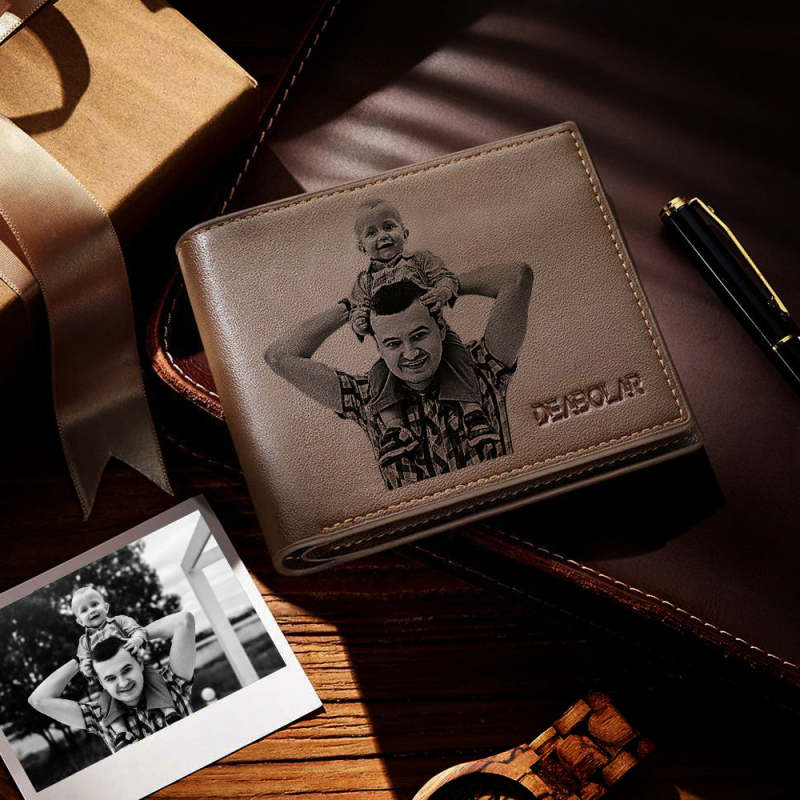 Gift for Dad Men's Trifold Custom Photo Wallet - Brown