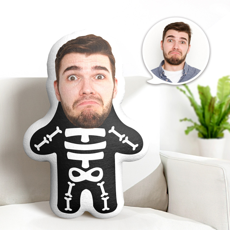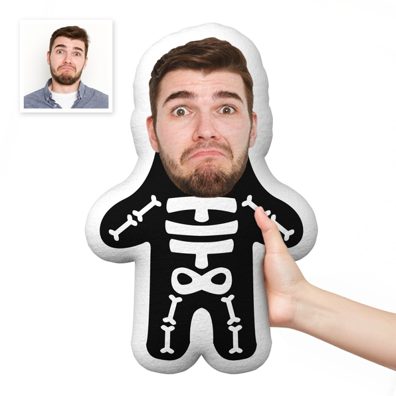 Halloween Skeleton Minime Throw Pillow Custom Face Teddy Personalized Photo Minime Pillow Gift for Him