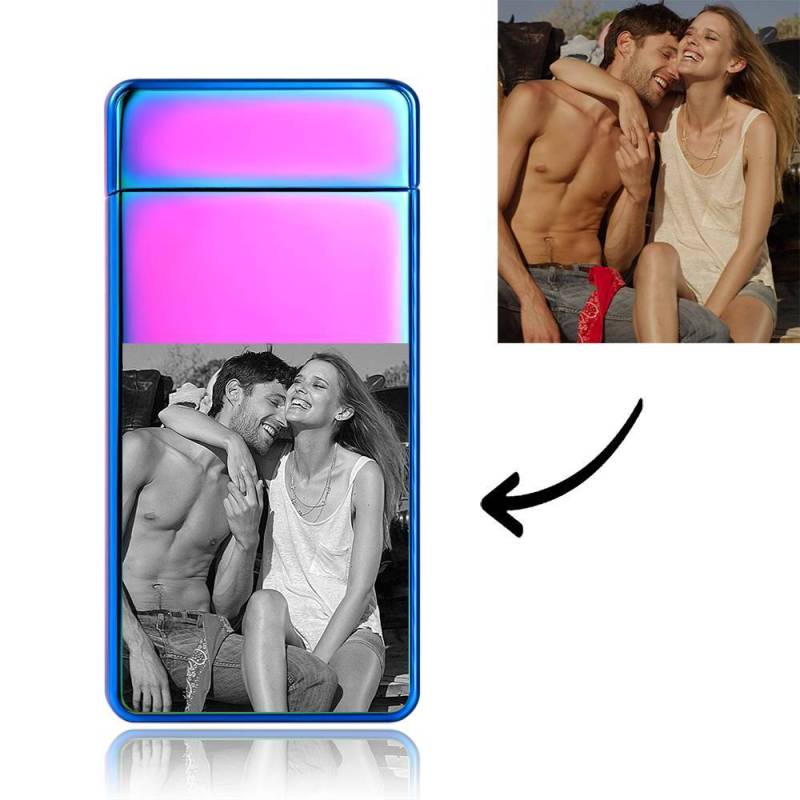 Men's Personality Custom Electric Blue Couple Gift Photo Lighter, Engraved Lighter
