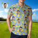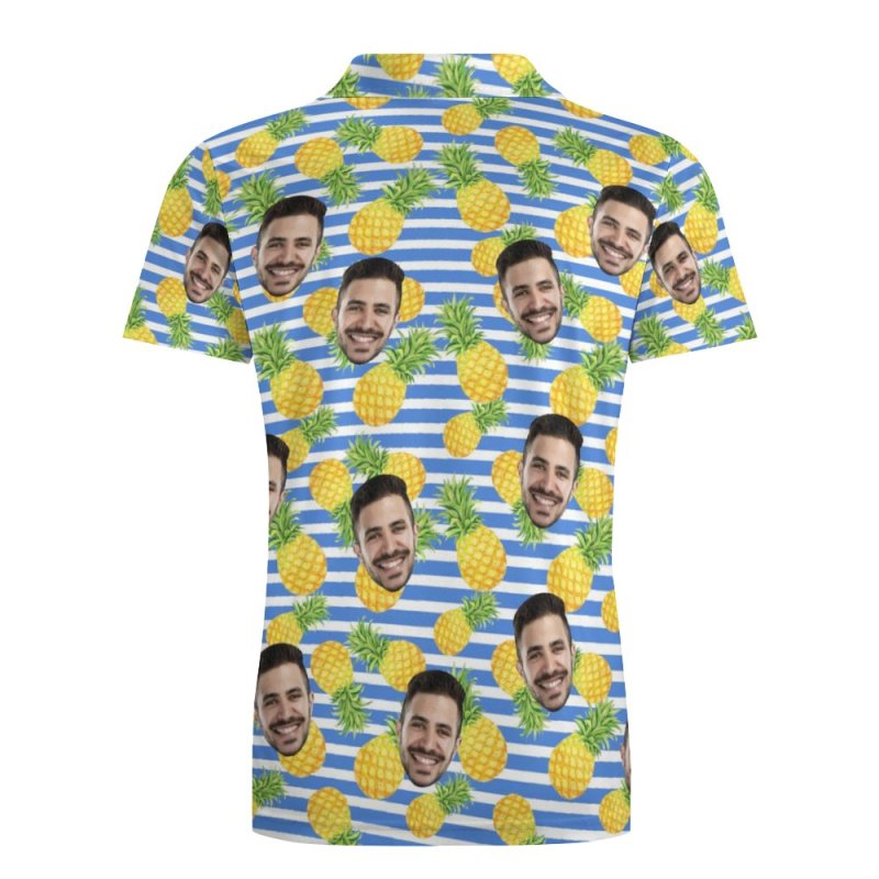 Men's Custom Face Polo Shirt Blue Stripes with Pineapples Personalized Hawaiian Golf Shirts