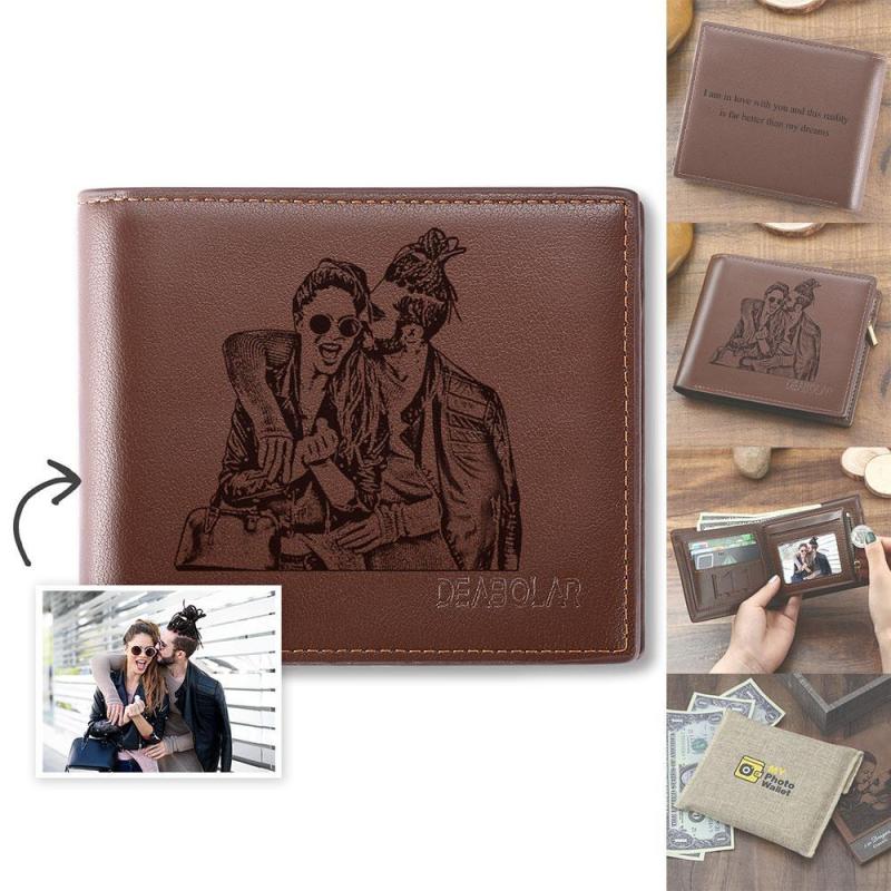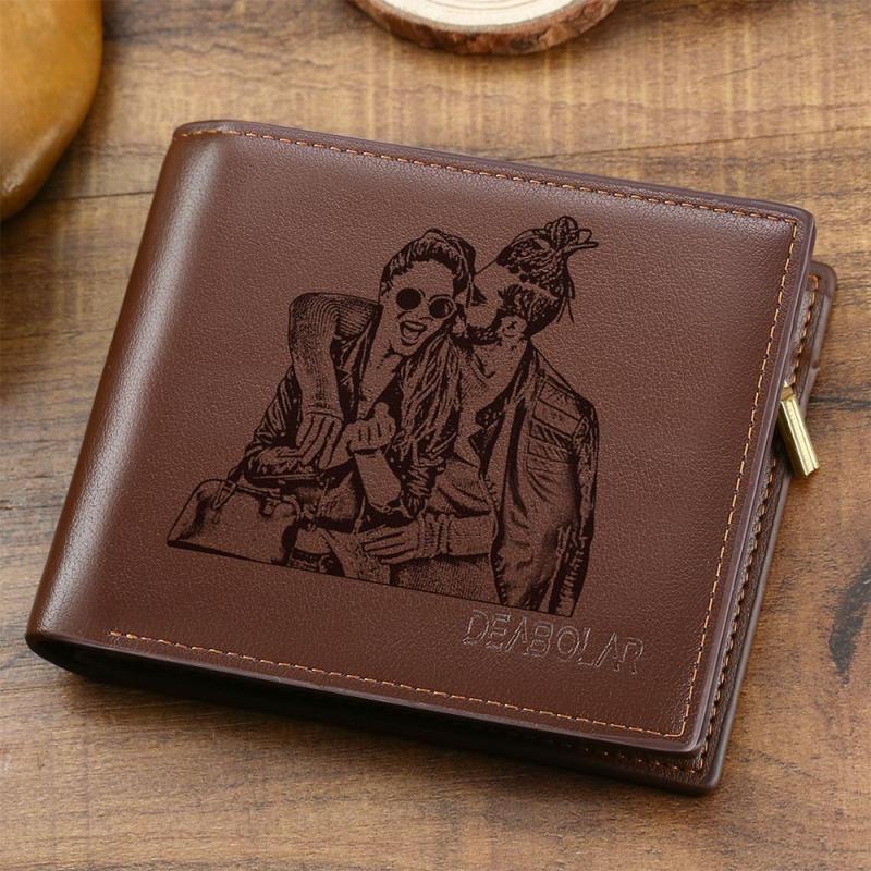 Custom Men's Trifold Photo Wallet Brown Graduation Gifts