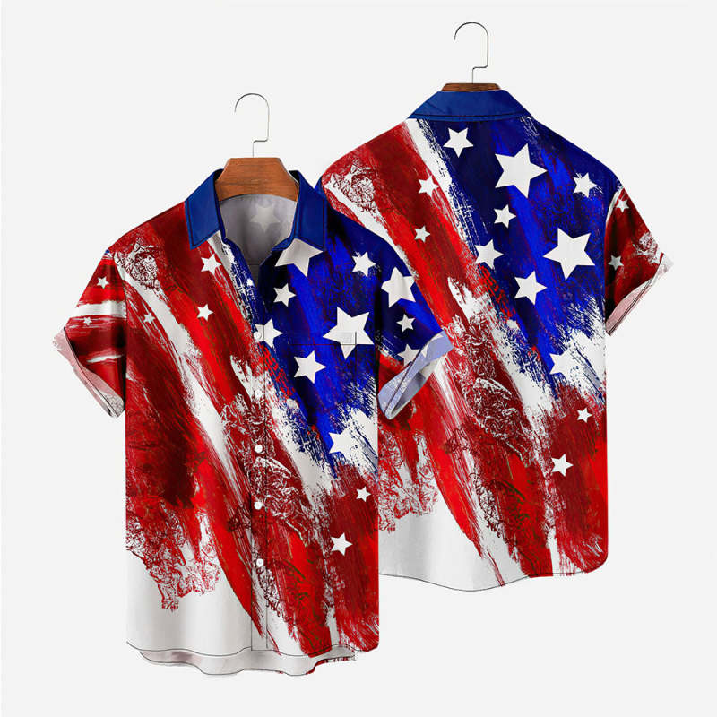 Men's Vintage Hawaiian Shirts 4th of July American Flag Patriotic Independence Day Hawaiian Shirts