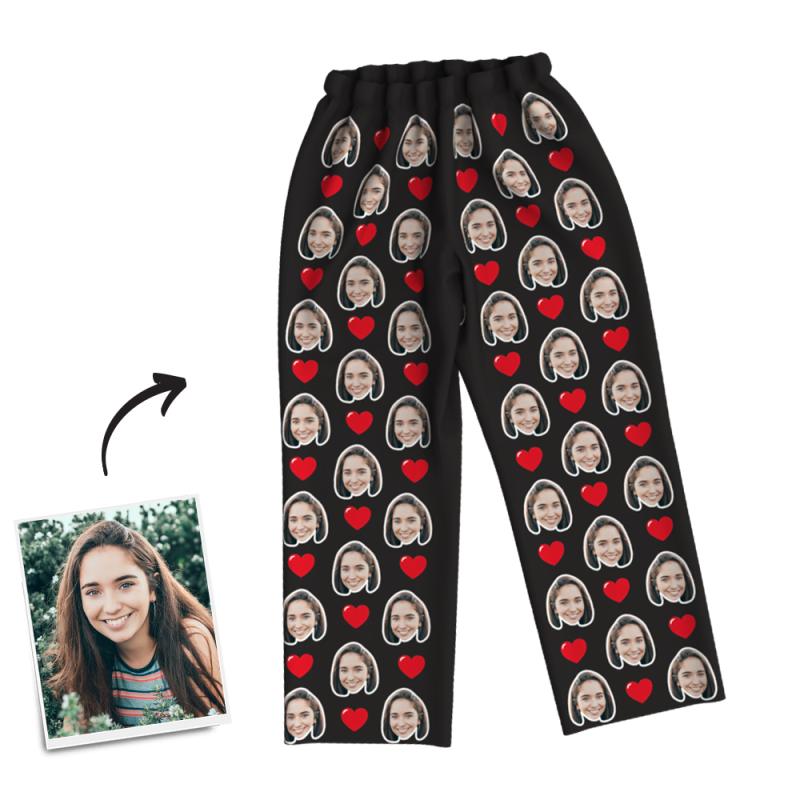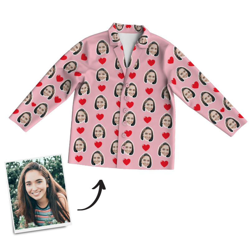 Custom Photo Long Sleeve Pajama Top, Sleepwear, Nightwear - Heart