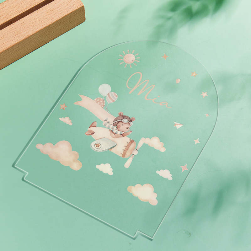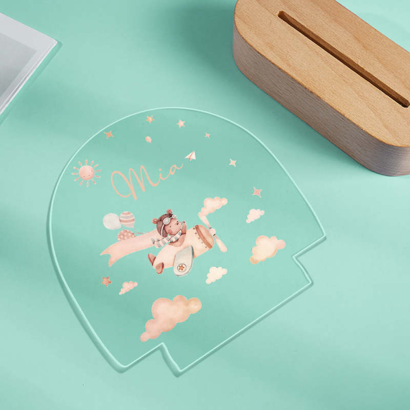 Personalised Baby Night Light With Wooden Base Custom Name Nursery Animals Light Baby Gift