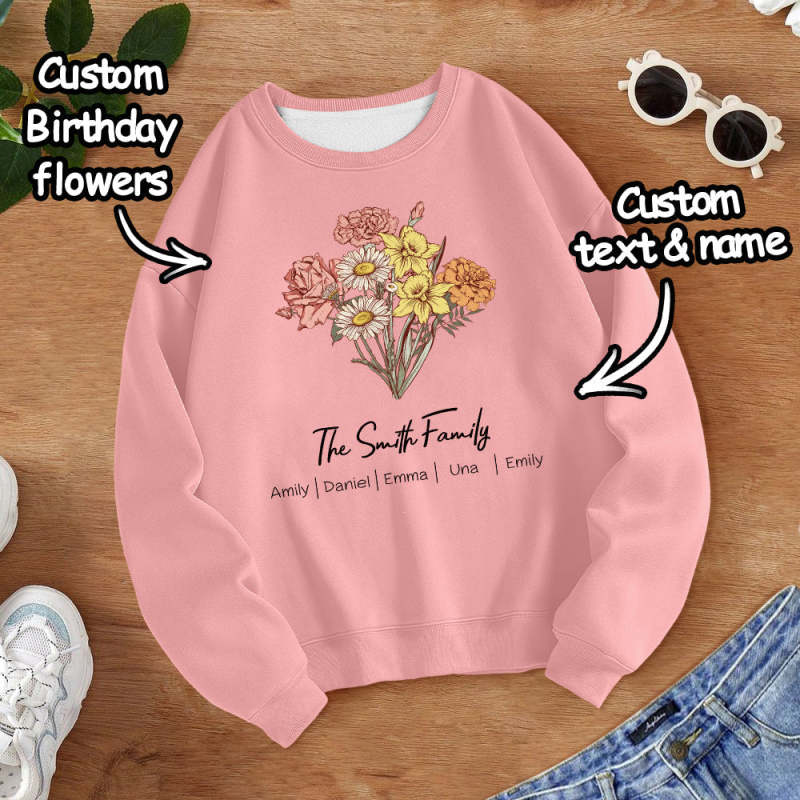 Personalized Birth Flower Bouquet Sweatshirt Custom Birth Flower Hoodie Gifts for Her