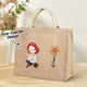 Personalized Cartoon Women Girl Birth Flower Jute Tote Bag with Name Wedding Birthday Gift for Her