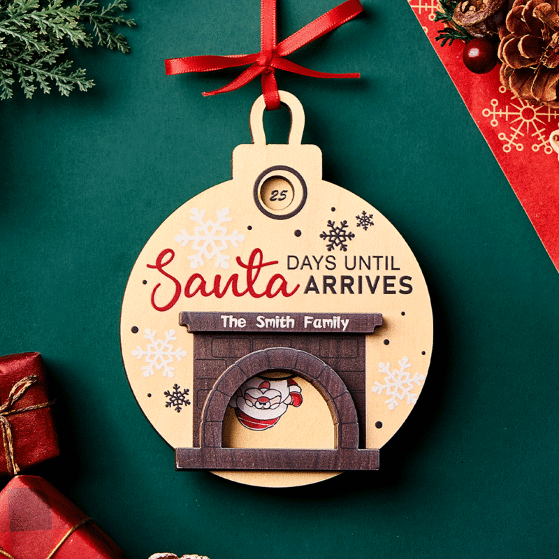 Personalized Christmas Santa in Fireplace Countdown Ornament Days Till Christmas Ornament