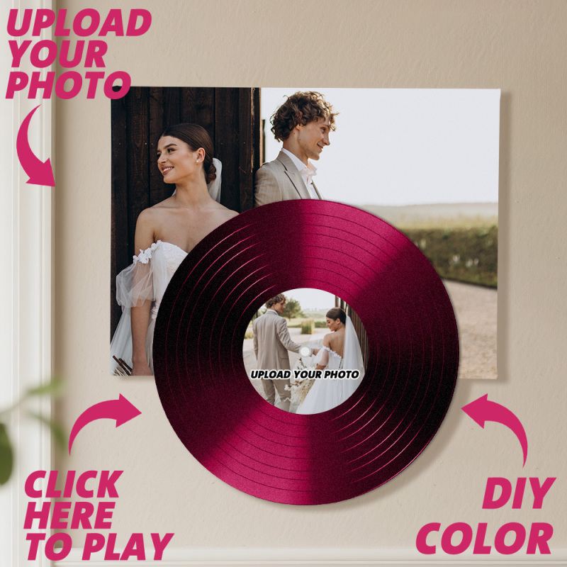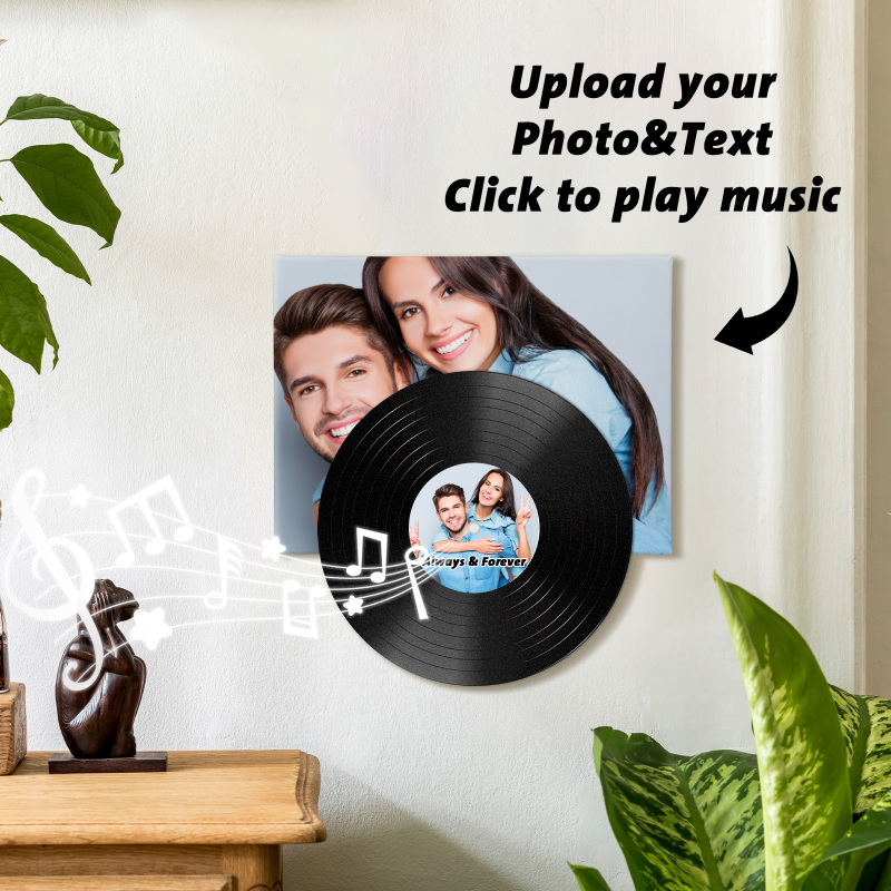 Personalized Couple Vinyl Music Wall Art Relive Your Love Story with a Photo & Song That Plays with Just One Click