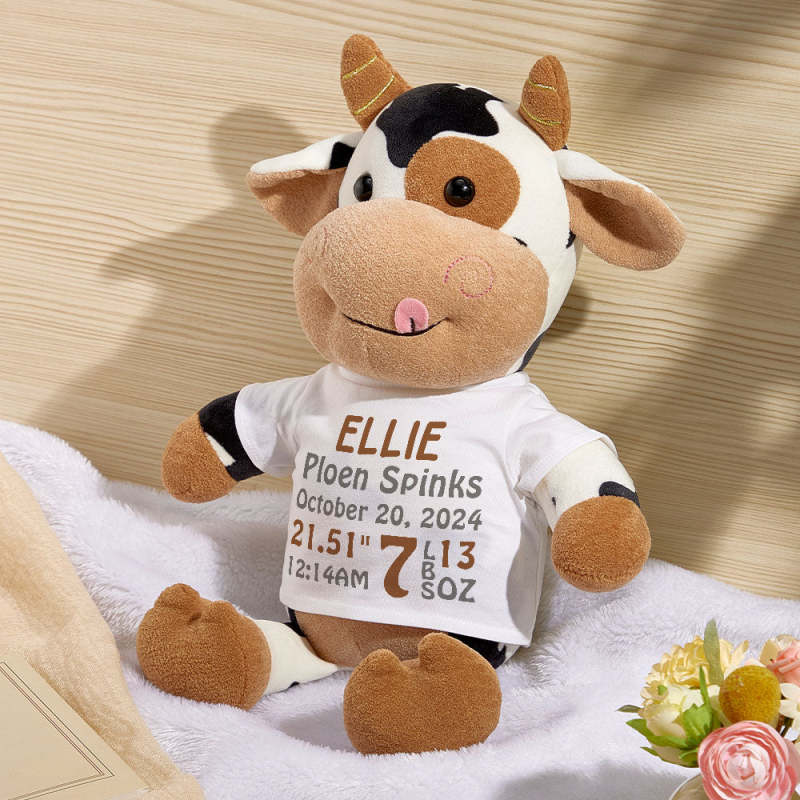 Personalized Cow Plush Stuffed Toy Birth Announcement Gift for Baby Shower
