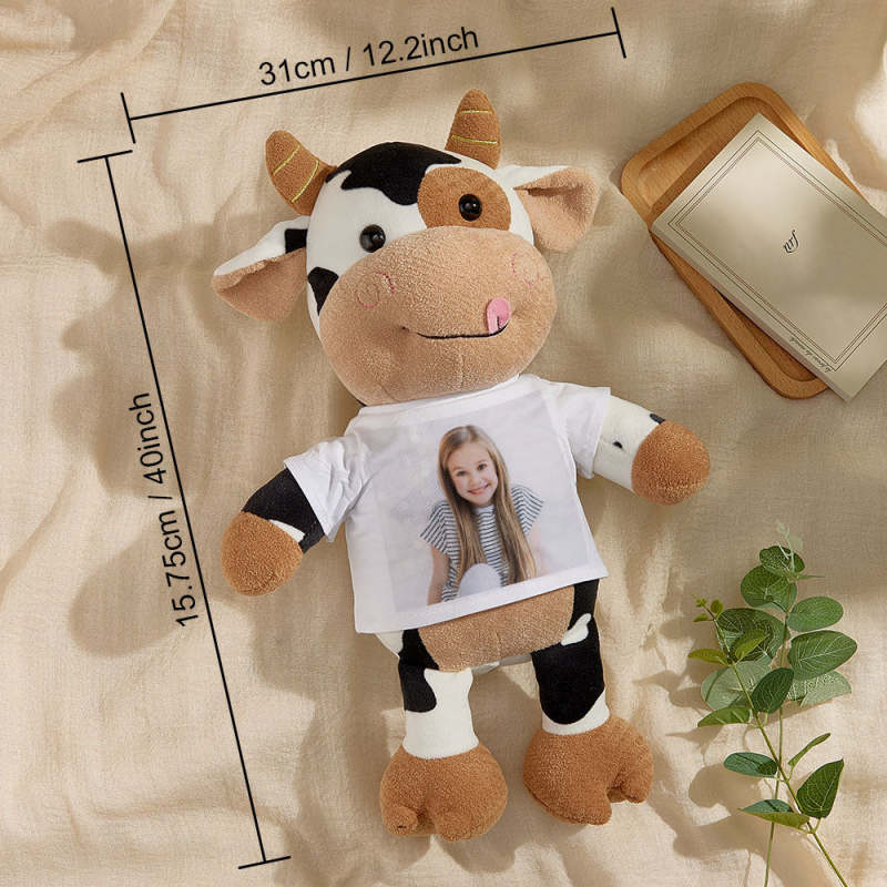 Personalized Cow Plush Stuffed Toy with Photo Gift for Kids