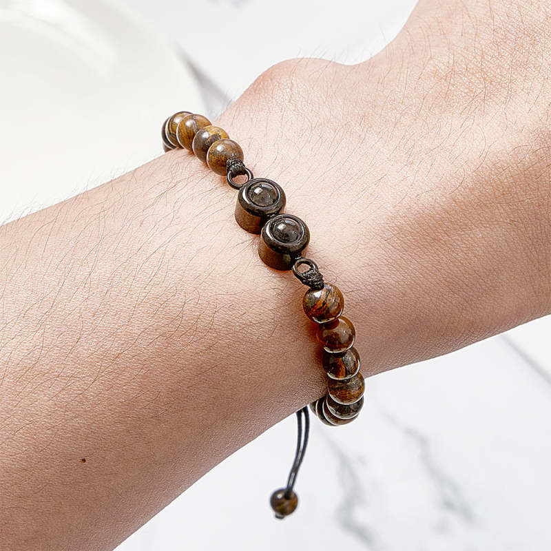 Personalized Double Pendant Projection Bead Bracelet Custom Photo Bracelet Gift for Couple Family