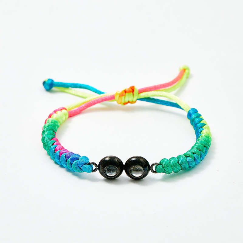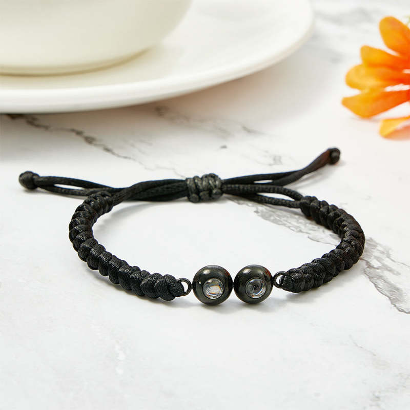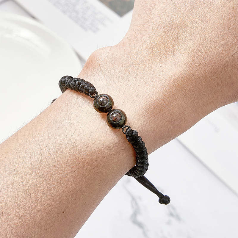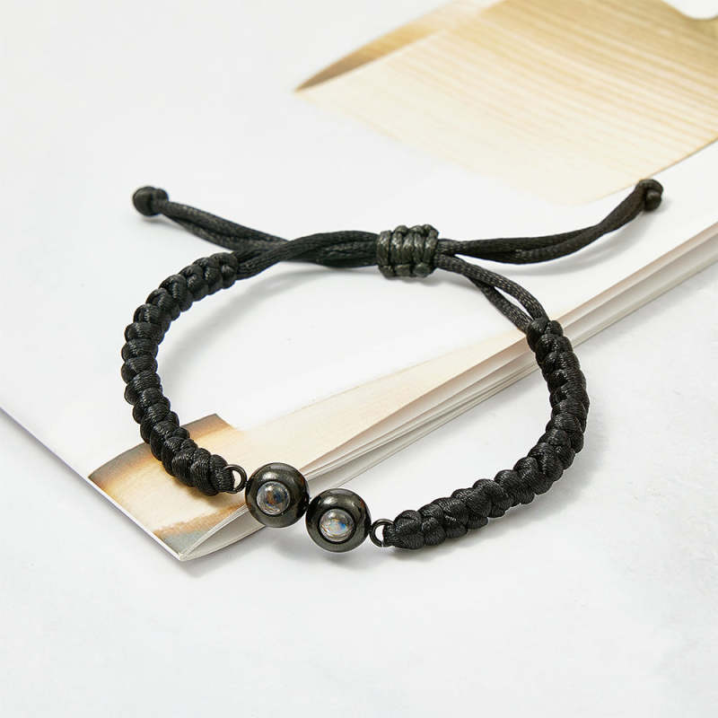 Personalized Double Pendant Projection Weave Bracelet Custom Photo Bracelet Gift for Couple Family