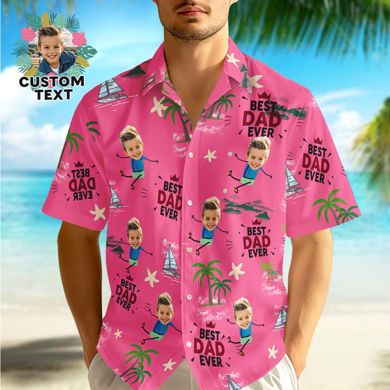 Personalized Face Hawaiian Shirt Best Dad Ever Pink Hawaiian Shirt Men Face Hawaiian Shirt Father's Day Gift