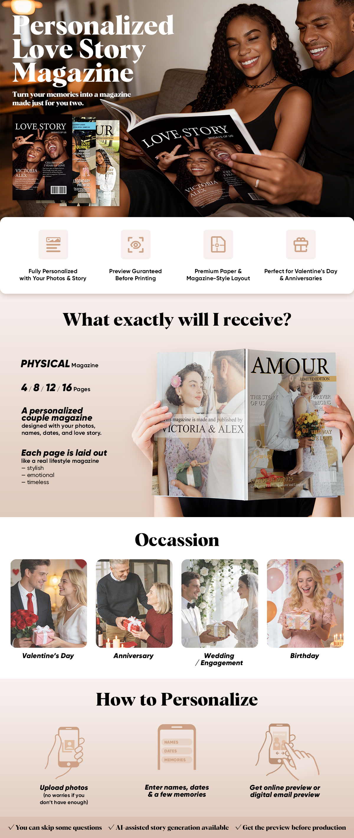 Personalized LOVE STORY Magazine for Couples on Valentine's Day