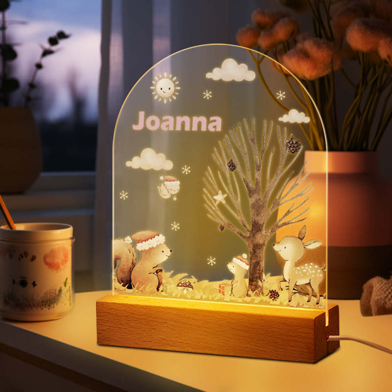 Personalized name children's night light customized Christmas squirrel seven-color night light