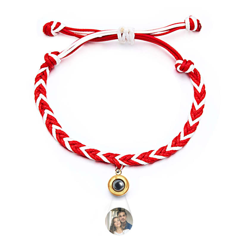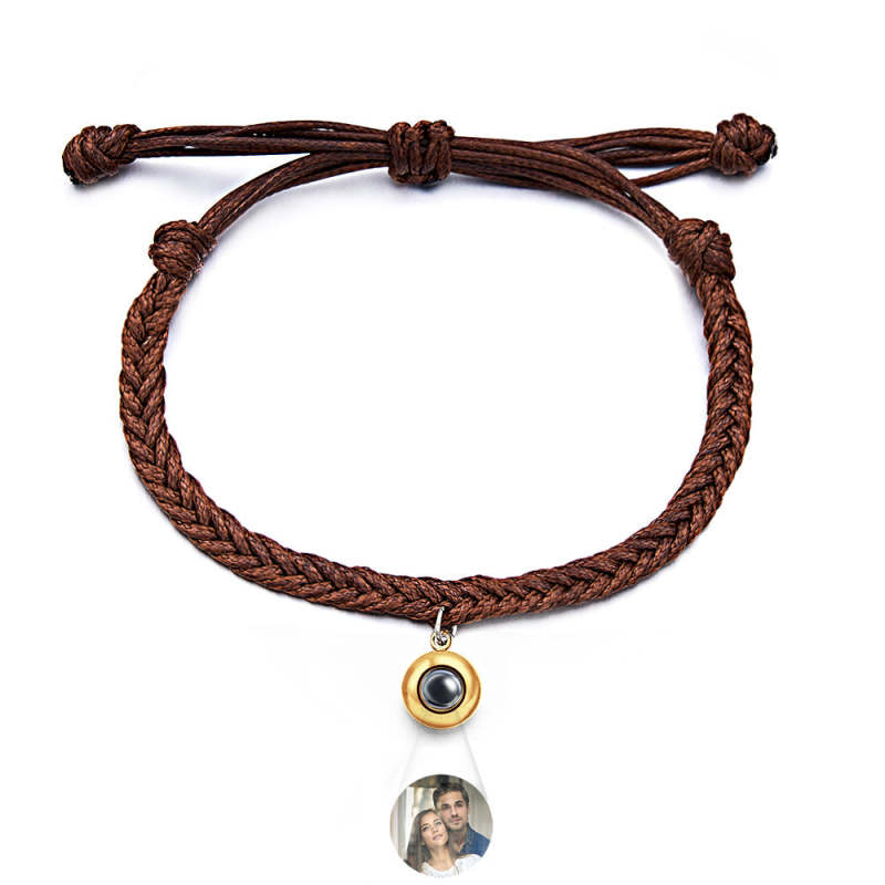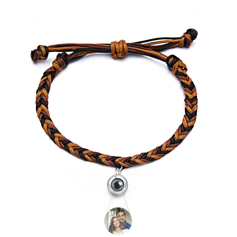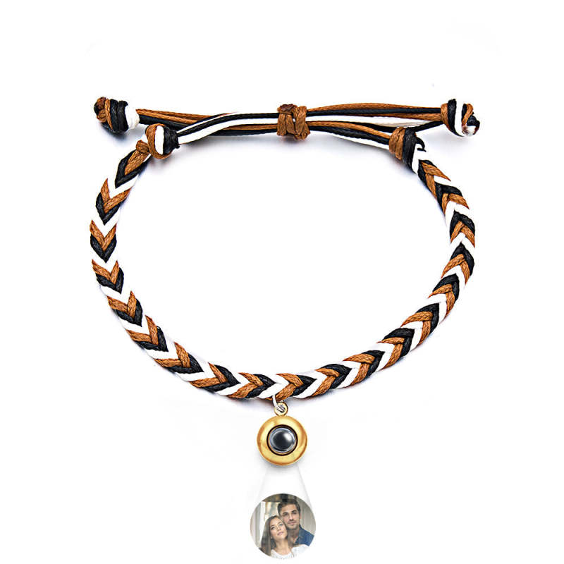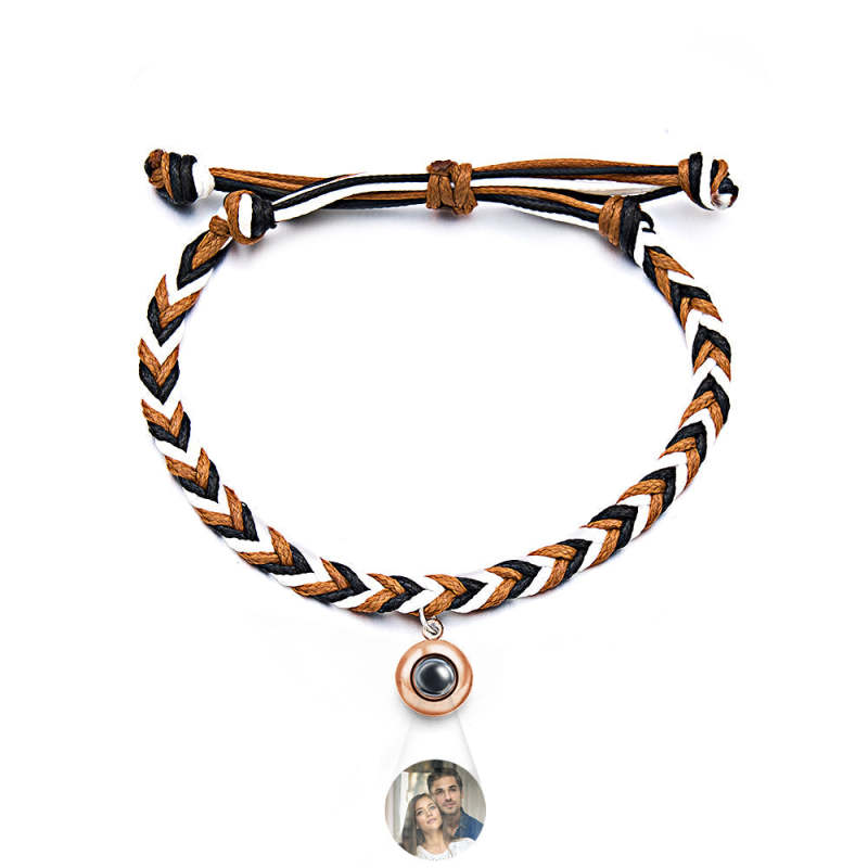 Personalized Projected Picture Bracelet Twist Rope With Round Pendant Warm Christmas Gift For Men