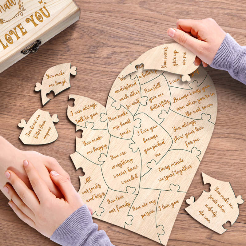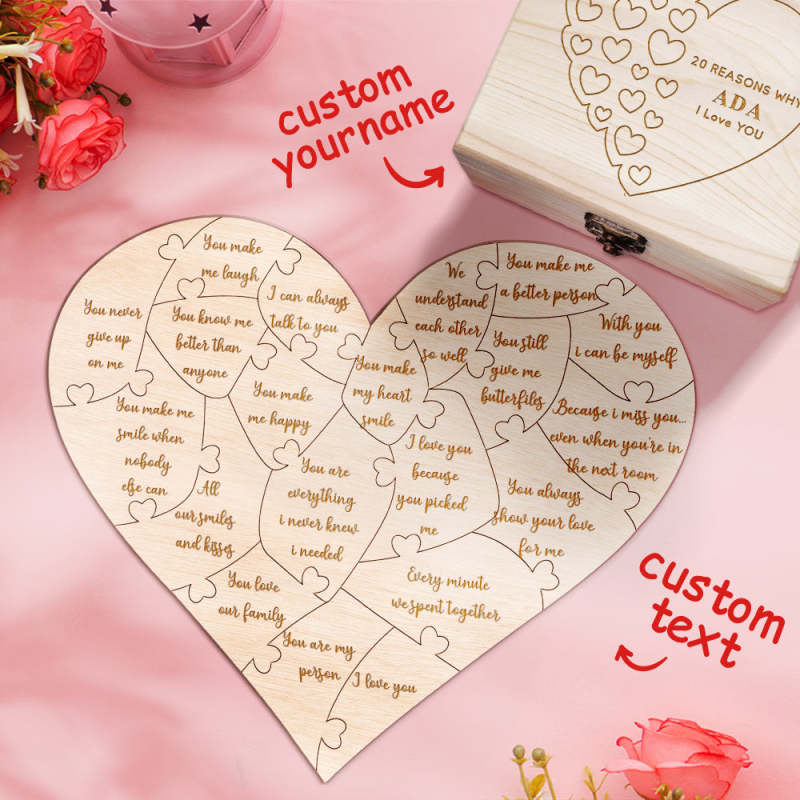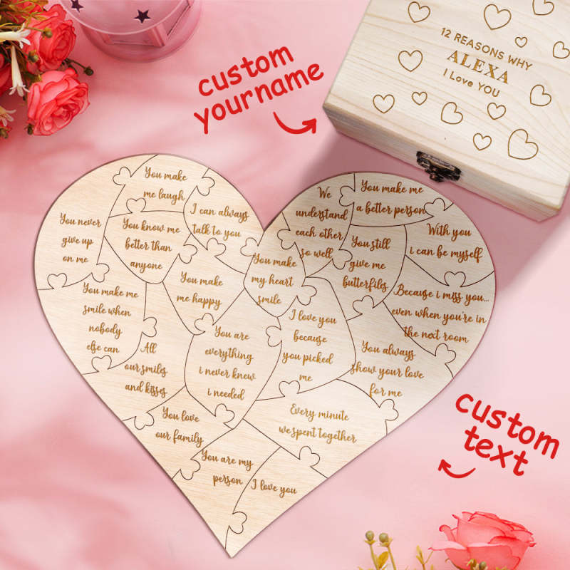 Personalised Wooden Puzzle with Box Reasons Why I Love You Unique Gift for Lover