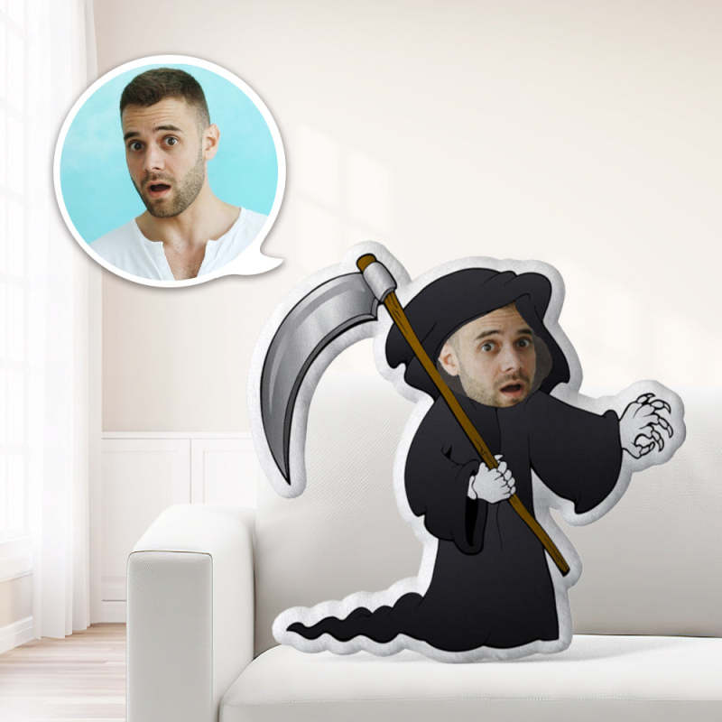 Photo Pillow Face Pillow Personalized Pillow Custom Pillow Minime Pillow Doll Grim Reaper Halloween