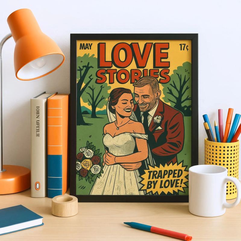 Vintage Comic Book Cover Style Wedding Portrait for Newlyweds