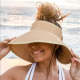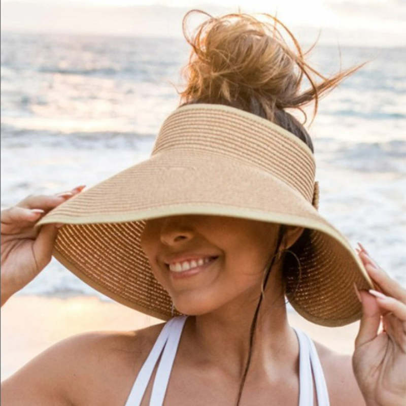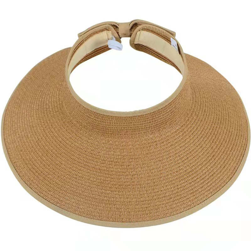 Women Sun Protection Empty Top Straw Hat Beach Wide Brim Bow-Knot Big Floppy Folding Sun Hat