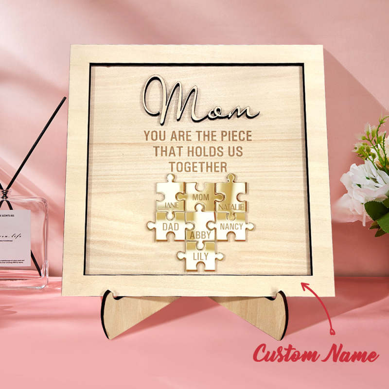 You Are the Piece That Holds Us Together Personalized Mom Puzzle Plaque Mother's Day Gift